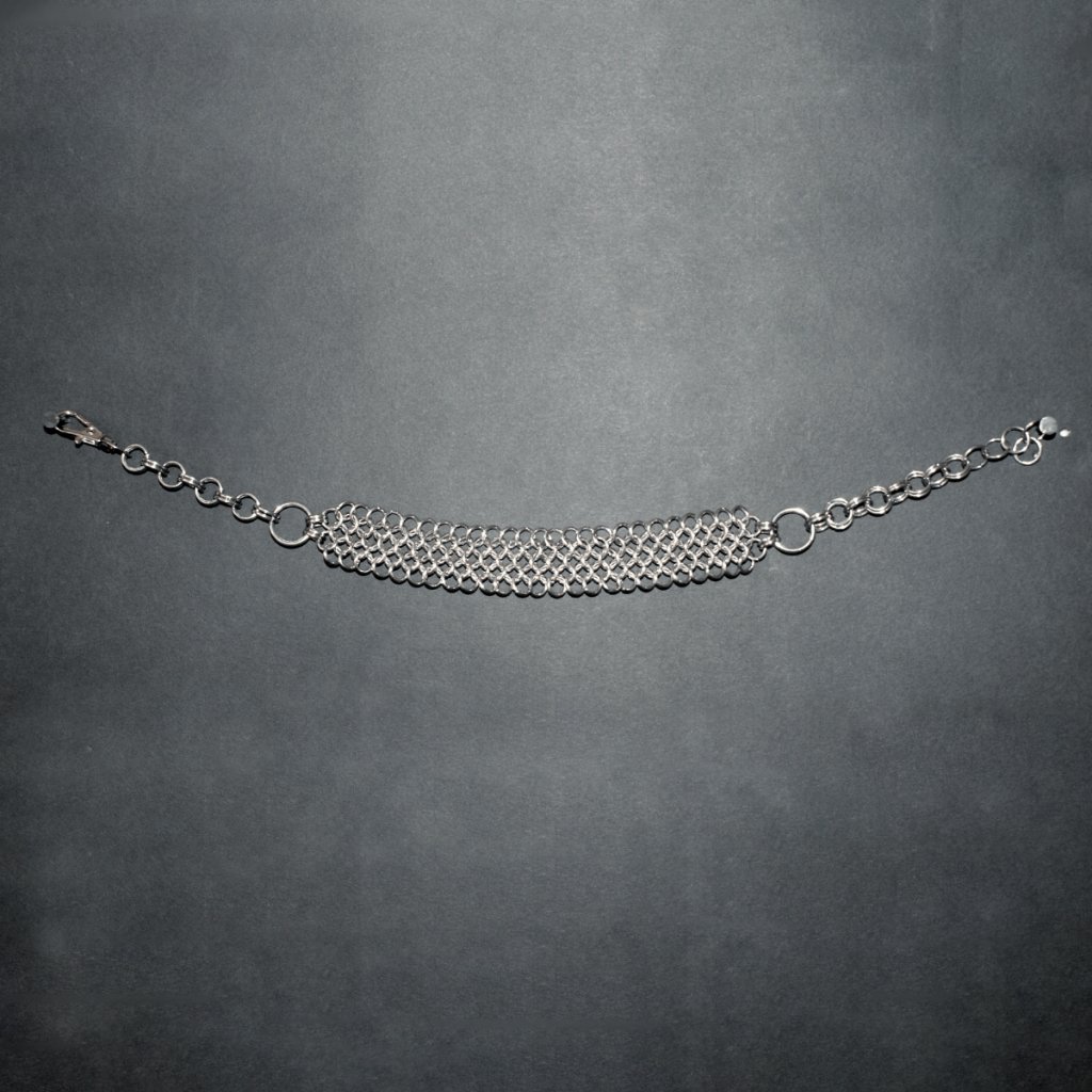 Made using a tight European 4 in 1 weave, the Bubble & Spark chainmaille choker boasts incredible strength and flexibility. Its flat, dense structure hugs the neck like modern armor while retaining an unmatched level of comfort.
