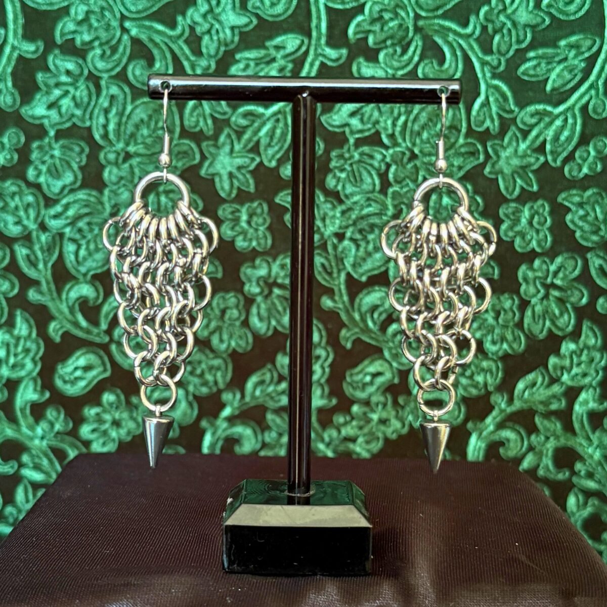 Materials: Non-tarnish 304 stainless steel jump rings, stainless steel hooks (with rubber backs), stainless steel spikes.