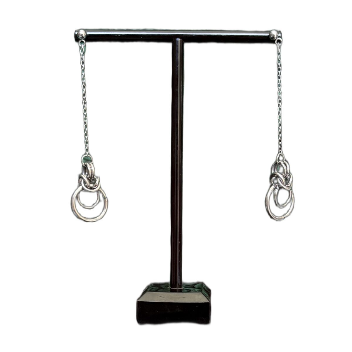 The meticulously designed focal point of these earrings is a Byzantine piece with a Moon-shaped cluster of rings at the end. This thoughtful arrangement results in a dynamic yet subtle interplay of textures that captures attention without overwhelming the senses.