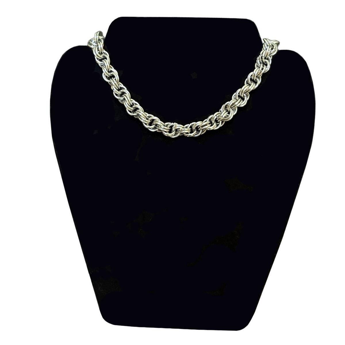 The Uppsala chainmaille necklace is meticulously crafted to reflect both strength and artistry. Designed with a thick, textured aesthetic in a double JPL 3 weave, each ring is forged from polished stainless steel to create a dense and rounded weave. The braided rope-like effect captures the essence of intricate craftsmanship while delivering uncompromising durability.