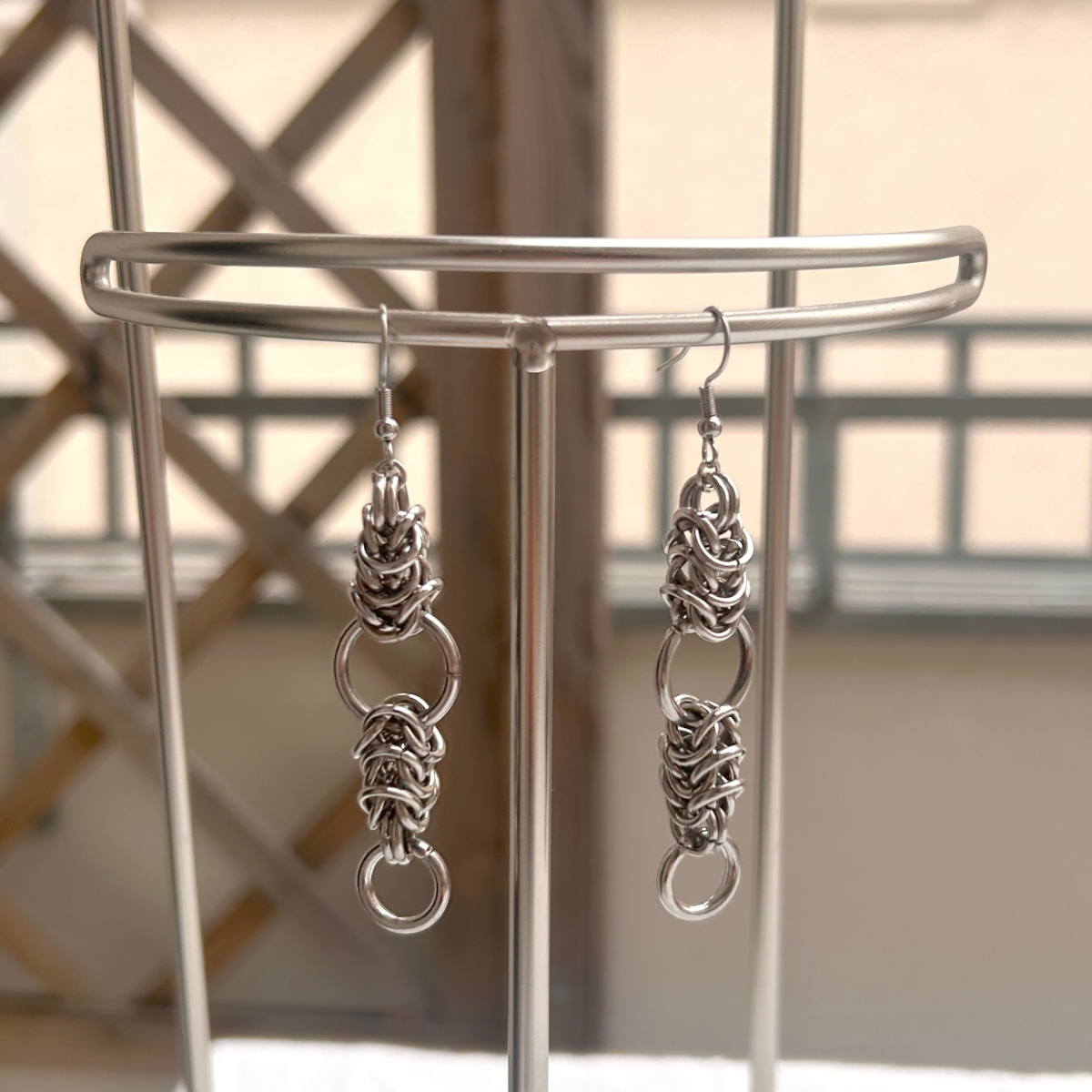Handmade in our workshop in Berlin, these stainless steel chainmaille earrings are unisex and made to last.